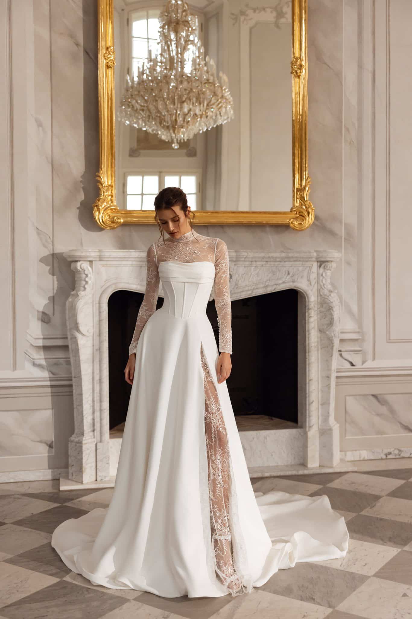 Brautkleid mit V-Ausschnitt und Beinschlitz